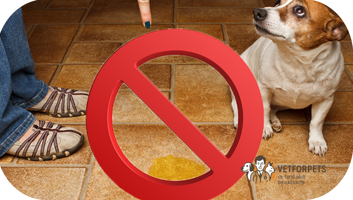 قطع رفتار: با گفتن «نه» و زدن دستها، توجه سگ را جلب کنید و او را به محل درست ببرید.