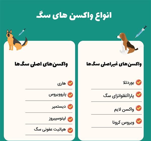 انواع واکسن سگ به دو دسته اصلی تقسیم میشوند: واکسنهای اصلی که برای همه سگها ضروری هستند و واکسنهای غیرضروری که بر اساس سبک زندگی و محیط سگ انتخاب میشوند. انتخاب درست واکسنها بر اساس سن، نژاد، سلامت کلی و محل زندگی سگ انجام میگیرد و باید توسط دامپزشک تعیین شود.