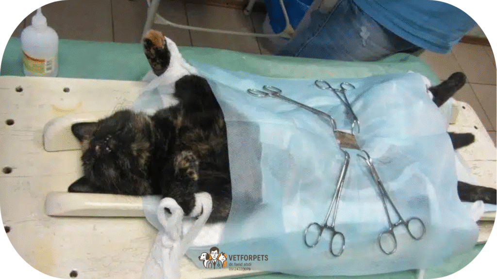 در این عمل، تخمدانها و رحم گربه برداشته میشوند.