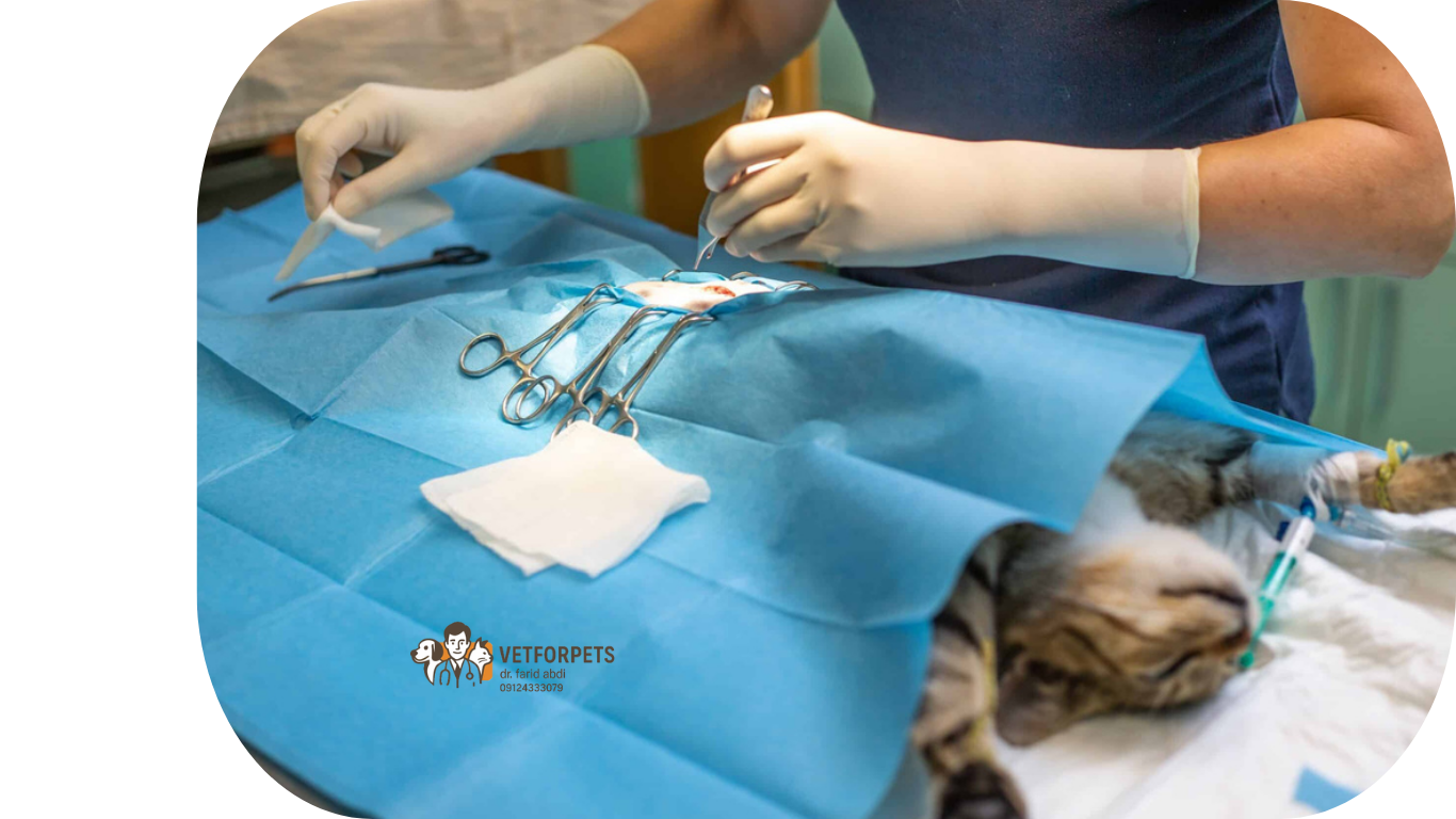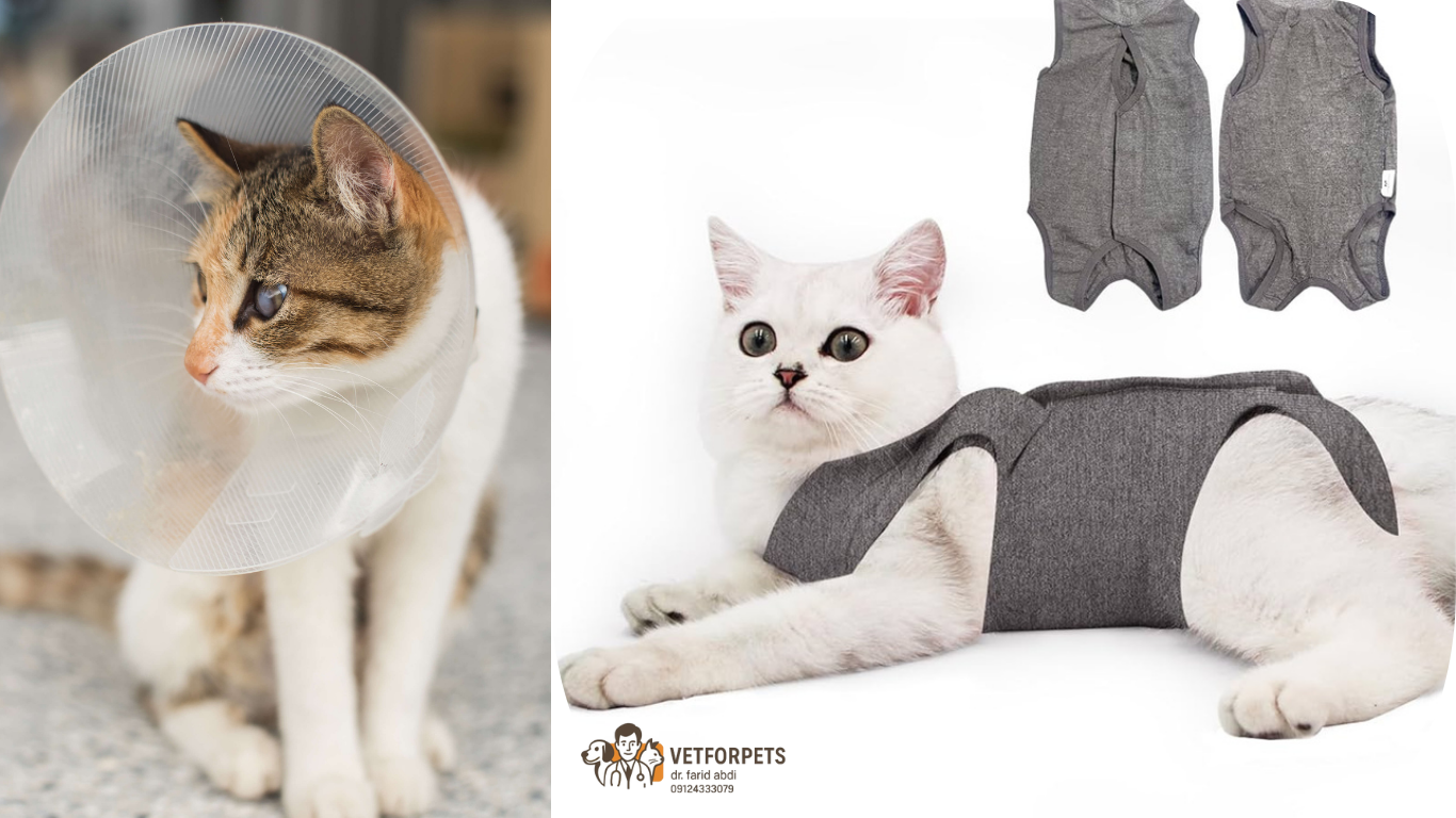 جلوگیری از لیسیدن زخم: استفاده از یقه طبی (الیزابت) یا لباس جراحی برای جلوگیری از لیسیدن یا خاراندن محل جراحی ضروری است.