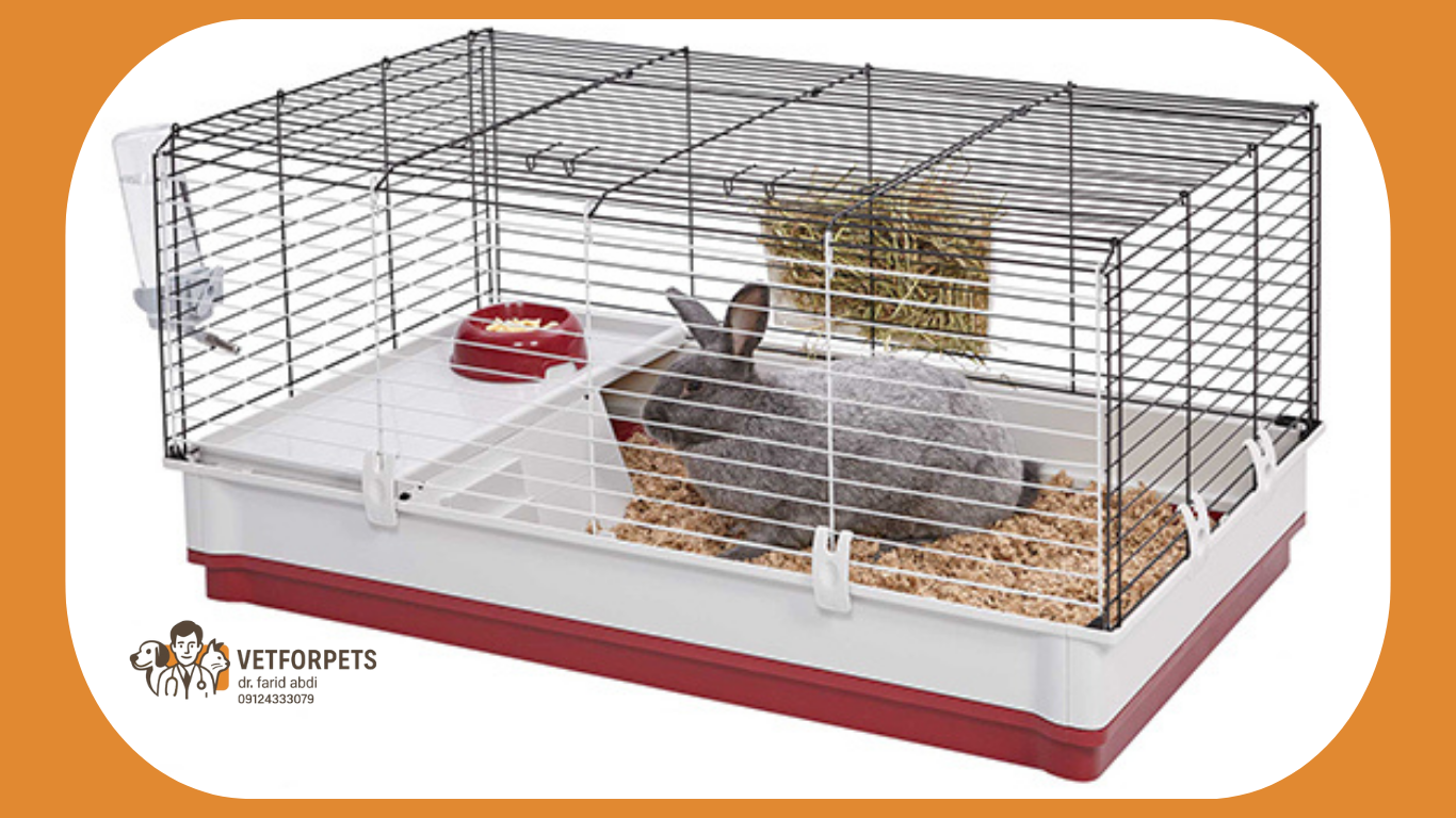 جنس قفس: قفسهای فلزی با کف پلاستیکی یا چوبی مناسباند. از قفسهای سیمی با کف مشبک اجتناب کنید، زیرا به پنجههای خرگوش آسیب میرسانند.