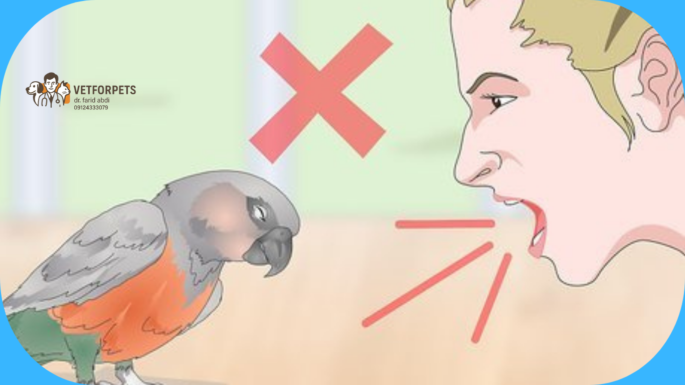 اشتباه رایج در آموزش صحبت به طوطی استفاده از تنبیه است که پرنده را میترساند. به جای آن از تقویت مثبت استفاده کنید.
